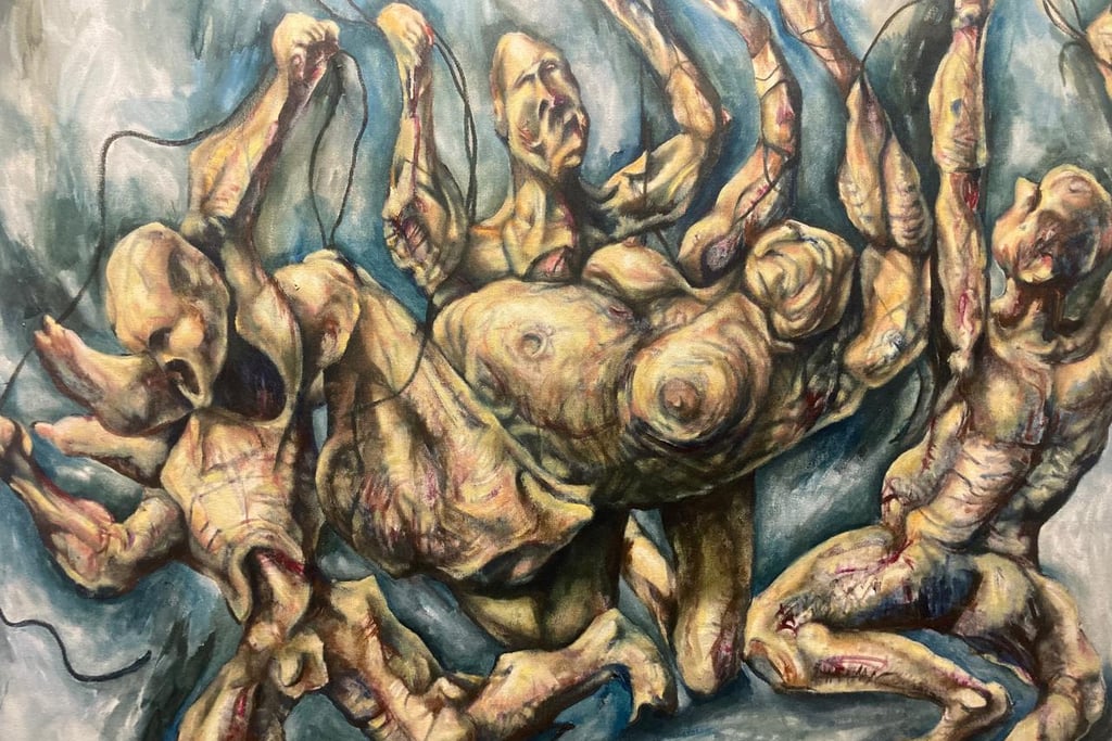 Each has stand-out pieces on display. Zúñiga’s distorted works are continually, inescapably affecting. In ‘Trampa’ (Trap), he paints a number of butchered, anonymous bodies engaged in a mutual act of hoisting each other up as objects of meat, and in ‘Carniceria’ (Butcher’s or Butchery), a human blob with a cleaver severs parts (human or other), watched by a faceless audience.