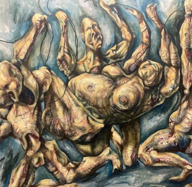 For the ten year anniversary, as a showpiece event, the RENART Gallery is running ‘Anacronías del Presente’ (Anachronisms of the Present) until May 22, 2026. The exhibition features the work — in dialogue — of two regional artists, Diego Mtz Peña of Tequisquiapan, Querétaro, and Eduardo Zúñiga of León, Guanajuato. It’s a daring presentation at a challenging moment in history, made clear by a multi-colored oil painter’s palette just inside the entrance, which has ‘Censurado’ (Censored) painted through its middle. Mtz Peña’s piece makes clear that the exhibition's discourse is going to push at the edges of the world as it currently is, and so it proves, with Zúñiga’s work bringing cycles of violence to the fore, drawing lines through periods in history, with Peña’s focus being more notionally social and political.